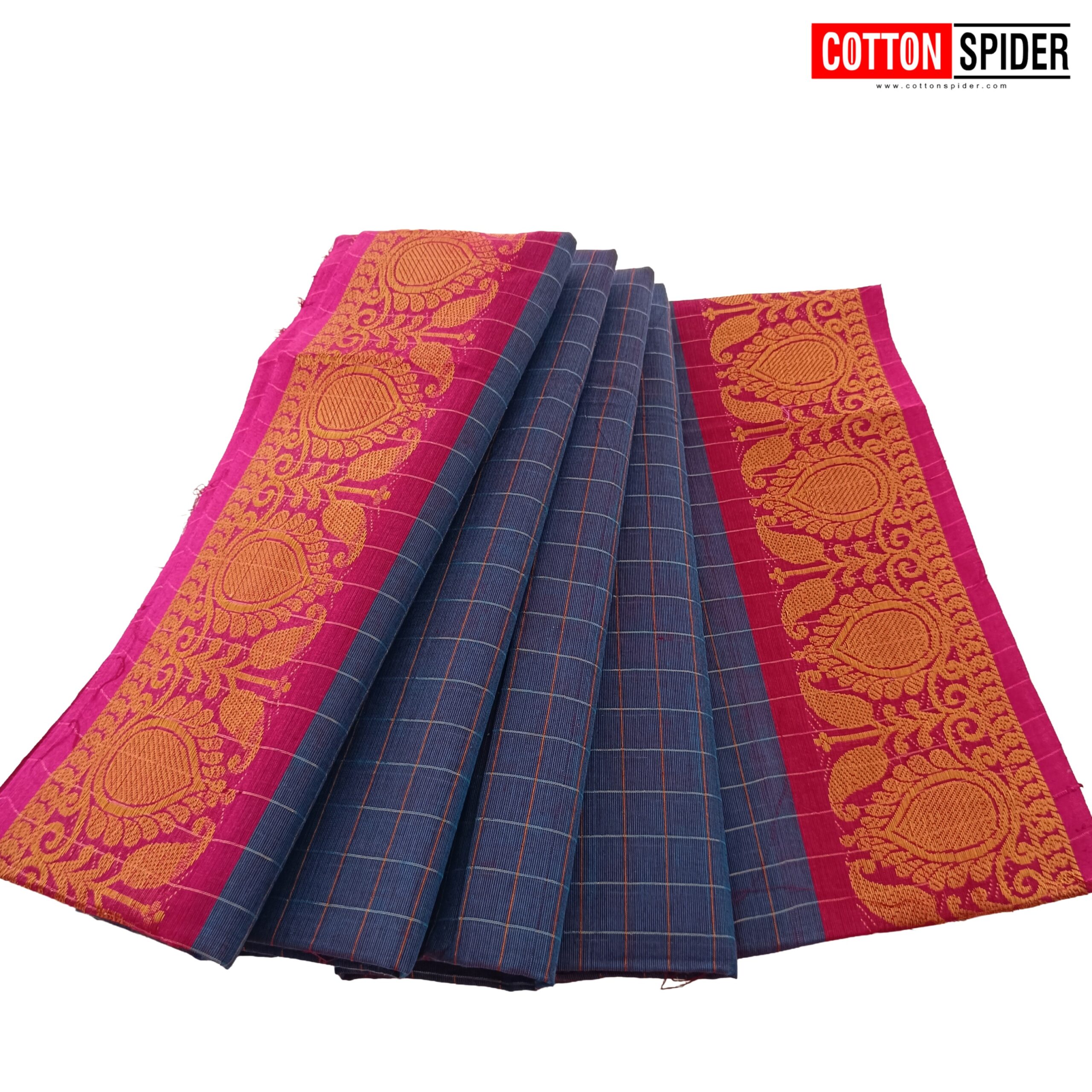 Hailing from the Chettinad region of Tamil Nadu, Chettinadu sarees are known for their bold patterns, striking colors, and durable fabric. These sarees often feature checks, stripes, or temple borders and are traditionally woven in cotton, making them ideal for daily wear. The designs are minimalist yet elegant, reflecting the rich cultural heritage of the Chettinad community. Modern versions also incorporate silk and zari for a more festive look. Renowned for their comfort and ease of draping, Chettinadu sarees are a timeless choice for those who appreciate traditional handloom styles with a contemporary twist.