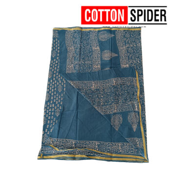 MulMul Dark Blue and Golden Yellow Border Saree
