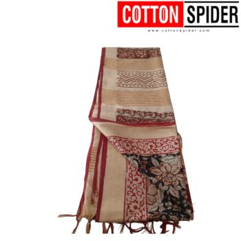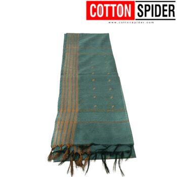 A Tussar saree is made from Tussar silk, which is known for its rich texture and natural golden sheen. Tussar silk is a type of wild silk produced by the silkworm species that live on trees, as opposed to the domesticated silkworm that produces mulberry silk. The fibers of Tussar silk are relatively coarse, giving the fabric a unique, textured appearance that sets it apart from other silks.