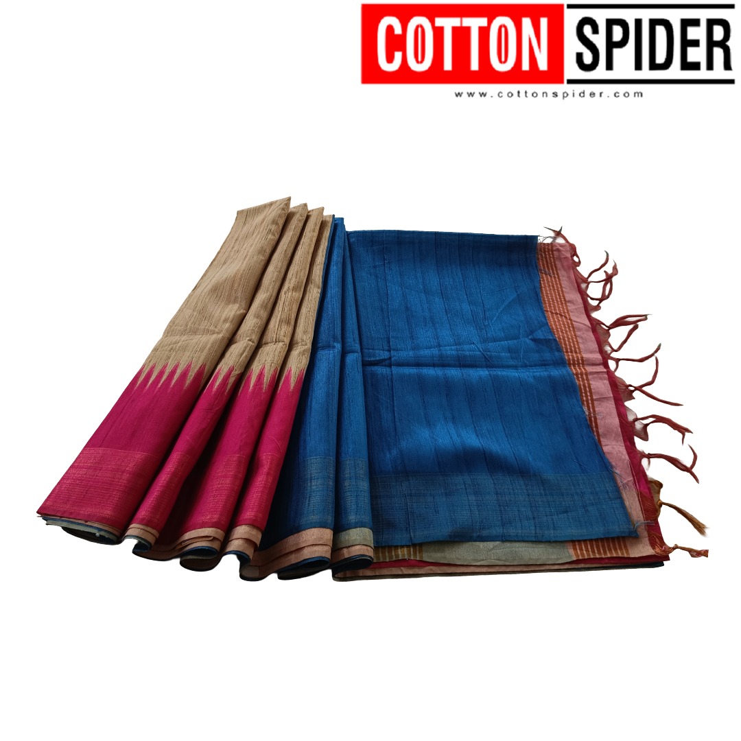 A Tussar saree is a type of saree made from Tussar silk, a luxurious and textured fabric known for its rich, natural sheen and unique feel.